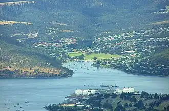 Geilston Bay (pronounced both "Jeels-ton and "Geels-ton", other pronunciations also possible)[a] is a largely residential suburb of Hobart between Risdon Vale, Shag Bay, and Lindisfarne, in the City of Clarence located on the Eastern Shore of the Derwent River, taking its name from an inlet of that river of the same name. The inlet and locality were sometimes known by the alternative name "Limekiln Bay" on account of lime kilns which operated there between approximately the 1830s and the 1920s, the remains of which remained visible for some decades thereafter; another early name for the Bay was "James's Bay". The present suburb name derives from an early land holding "Geils Town" in the region purchased by Andrew Geils, Commandant of Van Diemen's Land (Tasmania) for a brief period in 1812-1813, who subsequently left his Australian holdings behind when he moved back to Scotland.