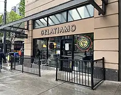 Gelatiamo is an Italian cafe[1] at the intersection of Union and Third Avenue in downtown Seattle.[2] The Seattle Times has described the business as an ice cream and pastry shop.[3] Among gelato flavors are salted hazelnut caramel,[4] chocolate, and coconut. In addition to gelato and pastries, the menu includes cookies[5] and cakes such as the Diplomatica, a sponge cake with rum.[6] Gelatiamo has also served biscotti,[7] panettone,[8][9] sandwiches, and espresso drinks. According to The Daily of the University of Washington, "Something else that makes this gelato unique is the tight quality control system."[10]