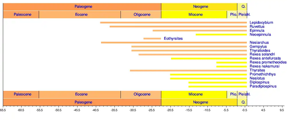 - ^ a b "Gempylidae". paleobiodb.org. Retrieved 2024-12-04.