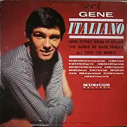 Gene Italiano is American singer Gene Pitney's seventh studio album, and first foreign language album, released on the Musicor label in 1964. The album features a number of Pitney's biggest early hits recorded in Italian, including "Twenty Four Hours From Tulsa", "Town Without Pity" and "Only Love Can Break a Heart".[2]
