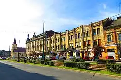 An urban site, including most of the buildings on the street, one building, and one statue are listed in the Romanian Monuments Register.[4]
