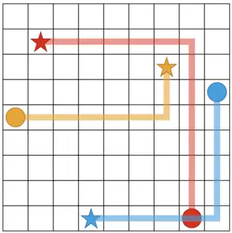 Similar to Euclidean distance, Czekanowski distance involves calculated the distance between points of allele frequency that are graphed on an axis created by . However, Czekanowski assumes a direct path is not available and sums the sides of the triangle formed by the data points instead of finding the hypotenuse. This formula is nicknamed the Manhattan distance because its methodology is similar to the nature of the New York City burrow. Manhattan is mainly built on a grid system requiring resentence to only make 90 degree turns during travel, which parallels the thinking of the formula.