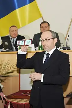 In 1998, Kernes was first elected into the Kharkiv City Council, and served three terms there.[2][7] Between April and May 2002, Kernes was the secretary of Kharkiv City Council.[7] In the City Council, he founded and led the nonpartisan deputy group "New Kharkiv - New Opportunities".[6]