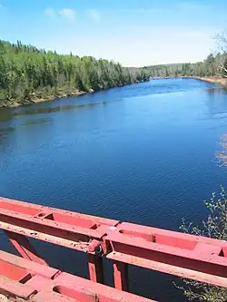 The section of the river between the Wapus River and the iron bridge downstream runs through a gorge with 25 meters (82 ft) cliffs on both sides. This 25 kilometers (16 mi) section is marked by continuous class II-IV whitewater, and should only be paddled by expert canoers.[2] The flow of the river depends greatly on the water level management in the Cabonga Reservoir.