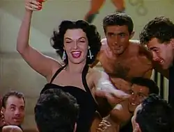 Although Hawks is credited as the sole director of the film, Russell and assistant choreographer Gwen Verdon contend that all musical numbers were actually staged by Jack Cole.[7] Russell said, "Howard Hawks had nothing to do with the musical numbers. He was not even there."[8] Hawks later confirmed this in an interview with author Joseph McBride: "I did a musical called Gentlemen Prefer Blondes, and I didn't do the production numbers. I didn't have any desire to."[9]