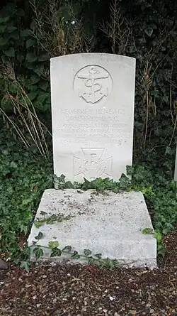 On 9/10 May 1918 at Ostend, Belgium, Lieutenant Drummond commanding HMML (Motor Launch) 254, volunteered for rescue work and was following HMS Vindictive to the harbour when a shell burst on board killing an officer and a deck hand and badly wounding the coxswain and Lieutenant Drummond. Notwithstanding his wounds, this officer brought M.L. 254 alongside Vindictive and then took off two officers and 38 men, some of whom were killed or wounded while embarking. He retained consciousness long enough to back his vessel away from the piers and towards the open sea before collapsing exhausted from his wounds.[1][2]