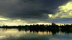 The city of Kollam lies at 8°53′13″N 76°35′26″E / 8.887082°N 76.590691°E with an average altitude of 3 metres. The average rainfall is 270 cm yearly.[4] The city is surrounded by Arabian Sea in the west, Ashtamudi Lake and panchayats of Neendakara and Thrikkaruva in north, Mayyanad panchayat in the south and Thrikkovilvattom and Kottamkara panchayats in east. The Kollam coast is a blessed coastal belt with the best mineral sand deposit of the country.[5] The backwaters of Ashtamudi, thick mangroves on its coasts, beaches, estuaries, scattered islands and pleasant climate are making Kollam as one of the best sea side tourist destinations in Kerala.[6][7]