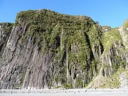 Unconformably overlying the basement rocks west of the Alpine Fault is a terrestrial sequence that represents Zealandia's progressive movement away from Gondwana. The Hawks Crag Breccia formed from erosion off fault scarps.[11] It is also New Zealand's best source of uranium.[12] These are then overlain by coal measures formed in swamps from the continued extension. These include both the Paparoa and Brunner Coal Measures, which are being extensively mined.