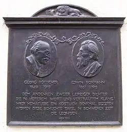 A year after his death, to honour him, a plaque of the "Leonides" Edwin Bormann and Georg Bötticher was erected at the Leipzig City Hall. At the ceremonial inauguration on 16 April 1919, his son Joachim Ringelnatz spoke the poem "Junge an Alte 1919". Part of Georg Bötticher's artistic estate, including numerous designs for patterns, is in the collections of the Grassi Museum in Leipzig. In 2010, a new compilation of Georg Bötticher's Poems was published, with a cover graphic by Udo Degener, edition grillenfänger, Udo Degener Verlag, Potsdam 2010, ISBN 978-3-940531-17-9.