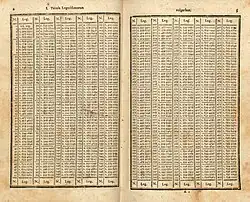 Over the years, Vega also wrote a four-volume textbook titled Vorlesungen über die Mathematik (Lectures on Mathematics).[3] Volume I was published in 1782 when Vega was 28 years old, followed by Volume II in 1784, Volume III in 1788, and Volume IV in 1800. These textbooks include valuable tables; for example, Volume II contains closed-form expressions for the sines of multiples of 3 degrees, presented in a user-friendly format.