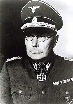 Georg Keppler joined the army in 1913 and took part in World War I. Between 1920 and 1934, Keppler was a police officer commanding city and state police units. In 1935, he joined the paramilitary force of the Nazi Party, SS-Verfügungstruppe (SS-VT), eventually leading a battalion in the ”Deutschland” regiment. In September 1938, after the Anschluss, Keppler was promoted to command the newly raised “Der Führer” regiment, becoming a component of the SS-Verfügungs Division. Keppler served as Der Führer‘s regimental commander throughout the invasion of France, Balkans Campaign and in Operation Barbarossa. In August 1940, Keppler was awarded the Knight's Cross of the Iron Cross. On 15 July 1941, he took over for injured Theodor Eicke as a commander of the SS Division Totenkopf. He went on to command the SS Division Nord and the SS Division Das Reich.