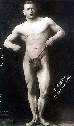 Prior to World War I, Lurich, along with friend and fellow Estonian wrestler Aleksander Aberg travelled to the United States to perform for American audiences. Lurich competed in freestyle wrestling matches in the United States between 1913 and 1917. Lurich wrestled American world wrestling champion and title holder Frank Gotch in Kansas City in 1913, but lost what would be Gotch's final match.[5][6][7]