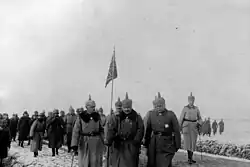 On 18 November 1917, Marwitz reported that troop dispositions unchanged. Despite statements by prisoners, the presence of camouflaged tanks, and air reconnaissance revealing a build-up in the rear, Marwitz concluded that an attack was unlikely.[4] As a result, Marwitz was still in bed at the le Cateau HQ when he first heard of the British tank offensive toward Bourlon Ridge, which they had identified as a vital strategic target.[5] The surprise was disabling to his infantry, exacerbated by cut communication lines. The Crown Prince, in command of Northern Group, informed Berlin. Marwitz was forced to contemplate total withdrawal. The morning of 21 November, Fontaine had already fallen, but the Second Army knew the allied strength and its dispositions. They ordered up Reserves, the 214th, 119th and 3rd Guards Divisions, all from the north Aisne and Flanders. Rupprecht ordered even more to support Marwitz's position.[6] The Battle of Cambrai ensued, which saw the most extensive use of tanks to date, more than twice the previous number in one engagement, as well as new combined arms tactics. As the British had not adequately prepared for the strength of German defenses, on the morning of 26 November 1917, Rupprecht and Marwitz planned at le Cateau the first counteroffensive against the British since April 1915. The following afternoon, they were joined by Lieutenant-General von Kuhl, Group Chief of Staff, at a special conference of all Group commanders. Marwitz, who was under pressure from Ludendorff, remained silent, subdued, still reeling and shocked by the unconventional speed of the Allied attack.[7] Marwitz's stormtroops destroyed many hundreds of tanks, but the allies had thousands of them. However, by the end of the month, the attack had petered out, and the tanks went into winter quarters. Marwitz and staff immediately determined to proceed with a counter-attack, and they did their best to recover enemy machines. A severe blizzard finally halted the fighting on 7 December. Of 50,000 German casualties, over 10,000 were taken prisoner, many due to ammunition shortages (reported to be prevalent since 1 December).