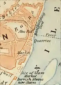 The Greek historian Antonios Chaldeos, who has written his PhD thesis about the history of the Greeks in Sudan,[4] says that beyond Egypt, Averoff exported Arabic gum and ivory from southern Sudan. According to the diary of Nicholas Papadam, which is part of the Sudanese archives, in 1872 George Averoff toured in all commercial centers flourished at that time (Khartoum, Sennar, Gedareff, Kasala, etc.) in order to make an investment. Finally, he chose an area in Omdurman which became the trade station of the ships that cross Nile, transferring goods from Egypt to Sudan and vice versa. However, Omdurman residents' local histories in Sudan suggest that Averoff was heavily involved in slave-trade there. In fact, the Omdurman quarter of "Abu Ruf", where historically the slave-market was situated, is still today named after him.[5]