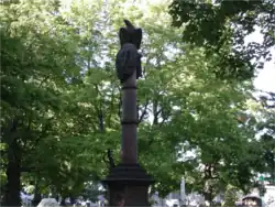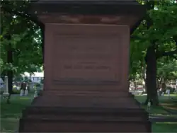 His body was returned to Worcester, Massachusetts, and thousands attended his funeral. He was buried in Rural Cemetery in Worcester and the monument honoring him is a thirty-foot column with a large eagle at the top.[10] His bravery was written about at the time.[11]