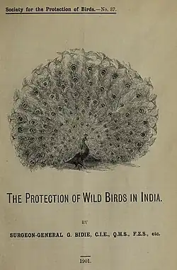 Bidie also worked as Superintendent of the Madras Museum from 1872 to 1884 as well as serving on the Cinchona Commission in 1873. He became a Fellow of Madras University in 1879. He also worked on sanitation, becoming Sanitary Commissioner of the Madras Presidency (1886) and was a delegate in the International Congress on Hygiene and Demography in 1891. While at the Madras Museum, he wrote on a wide range of subjects including natural history, numismatics and archaeology.[2] Bidie attempted to introduce cocoa cultivation in southern India, growing them experimental at the museum. Dewan Rama Iyer of Travancore consulted Bidie on the manufacture of paper. Bidie considered Casuarina equisetifolia as a plant suitable for "reclamation" of sandy soils. He was a friend of Richard Henry Beddome and had the museum acquire his herbarium collections for Rs. 1,500 in 1873-74. The collection included 2,435 specimens of plants.[7] In 1876 Bidie was appointed to the newly established executive committee of management of the Madras School of Arts.[8] He was elected a Fellow of the Zoological Society of London in 1890.[9] Bidie was instrumental in setting up laws for the protection of wild birds in India.[10] He was a life member of the Royal Society for the Protection of Birds[11] and published a leaflet on The Protection of Wild Birds in India (1901). Francis Day named a species of fish after him as Caranx bidii,[12] but this is now considered a junior synonym of Selaroides leptolepis.