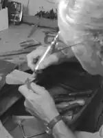 Brooks's first apprenticeship was as a goldsmith with Henry Birks and Sons in 1948.[1] He also set up a workshop at home where he could produce his own unique designs, markedly different to the conventional jewelry produced by Birks & Sons.[1] In 1950, he transferred his apprenticeship to Georges Delrue, a French avant-garde jeweler based in Montreal since 1947.[1] Delrue's work was influenced by European modernism, such as the work of Jean Arp, Joan Miró, and Jacques Lipchitz, and his workshop was the first modernist jewelry workshop in Canada.[1] Brooks worked with Delrue for seven years, where he learned from craftspeople such as the silversmith Hans Gehrig (1929-1989).[1]