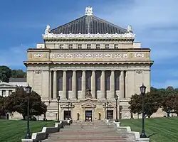 In 1907, Palmer & Hornbostel designed the New York State Education Building in Albany, gaining the contract by winning another design competition.[6][3] Based on the Mausoleum at Halicarnassus, the education building features 60 feet (18 m) tall steel columns covered in marble with terra cotta Corinthian capitals.[20][3] Palmer & Hornbostel used steel for fire safety and to enable its size and height.[20] The New York Times said, "Imagine a Greek temple with electric elevators".[20]