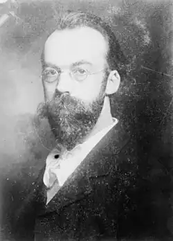 From 1892 until 1899, Herron was a quiet supporter of the Socialist Labor Party of America, the intellectual leader of which was party newspaper editor Daniel De Leon.[18] Herron exited the party in the aftermath of its bitter 1899 faction fight and joined the Social Democratic Party of America headed by Victor L. Berger and Eugene V. Debs, only then making his status as a socialist a matter of public knowledge.[18] He actively campaigned for Debs in the presidential election of 1900.[19]