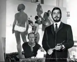 ![]() Dureau with his artwork, circa 1965 | |