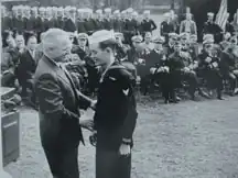 Wahlen, two other sailors (including Navy corpsman Robert E. Bush for the Battle of Okinawa), and eleven Marines each were presented the Medal of Honor from President Harry S. Truman outside the White House on October 5, 1945.