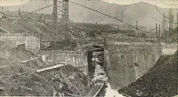 Thomson became City Engineer in 1892 and appointed Cotterill as an assistant. They developed the basis of what remains Seattle's main water supply over a century later (see Seattle Public Utilities), bringing in water from the Cedar River.[1] The financial hurdles were almost as daunting as the technical difficulties. In an 8 July 1889 election,[7] barely a month after the Great Seattle Fire (6 June 1889) Seattle's citizens had voted 1,875 to 51 to acquire and operate their own water system.[8] However, the Panic of 1893 wrecked the city's finances.[7] Cotterill devised the then-novel plan of borrowing money for the pipeline by pledging the receipts from the water to be delivered when the $1,250,000 system was completed. This brought Cotterill into electoral politics for the first time, supporting his own plan in an 1895 special election.[1] The Klondike Gold Rush put Seattle on a sound economic footing[7] and the 1901 completion of Cedar River Supply System No. 1 (active from 21 February 1901[9]) gave the city a steady supply of clean water.[10]