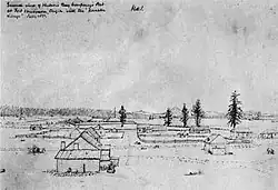 Gibbs may also have met Peter Skene Ogden during his first days in Fort Vancouver and Oregon City; later correspondence indicates he was well acquainted with Ogden.[14] He found work as the deputy collector of Customs at the Port of Astoria, Oregon Territory in Astoria, Oregon, and dabbled with practicing law again. In the spring of 1851, he joined the Oregon Indian Commission (composed of John P. Gaines, Alonzo A. Skinner and Beverly S. Allen) on a treaty excursion,[c] traveling through the Willamette Valley negotiating with the tribes, passing through Oregon City and again ending up in Fort Vancouver in July, 1851.[16]