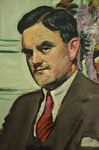 However, shortly after returning to the French Riviera in 1929, Hunter suffered a severe breakdown, forcing his sister to bring him home to Scotland in September. He recovered, and began to paint a number of portraits of his friends, including one of Dr Tom Honeyman, the Director of the Glasgow Art Gallery and Museum from 1939 until 1954.[22][25] Honeyman, at the time an art dealer, had assisted Hunter in developing his career, and painting the portrait may have been a gesture of thanks.[26]