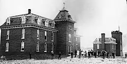 Noting the lack of higher education in the territory, he also helped established the Colorado University Schools which included a school of mines (which later became the state-run Colorado School of Mines), the Jarvis Hall secondary school, and the Matthews Hall school of theology.[10] George A. Jarvis, the largest contributor to the territorial activities of Bishop Randall, donated funds for the development of Wolfe Hall, an Episcopal school for girls in Denver. It was located at Champa and 17th Street.[11] John D. Wolfe of New York, the second largest donor and the namesake for Wolfe Hall, which was built by 1871.[11][12] Bishop Randall lived there with his wife.[11]