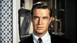 He had meant to follow The Subterraneans by returning to Broadway with Julie Harris in The Warm Peninsular but this did not happen.[5] In April 1959 Hedda Hopper said he would be in Chatauqua[39] but that was not made until a decade later, starring Elvis Presley, as The Trouble with Girls (1969). At the end of 1959 Hopper predicted Peppard would be a big star saying "he has great emotional power, is a fine athlete, and does offbeat characters such as James Dean excelled in."[40] Sol Siegel announced he would play the lead in Two Weeks in Another Town.[41] (Kirk Douglas ended up playing it.) He was also announced for the role of Arthur Blake in a film about the first Olympics called And Seven from America which was never made.[42]