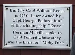 George Pollard Jr. (c. 1791–1870) was the captain of the whalers Essex and Two Brothers, both of which sank. Following both events, he became a night watchman in his town of Nantucket, Massachusetts. Pollard's life, including his encounter with the sperm whale that sank Essex, likely served as inspiration for Captain Ahab, the whale-obsessed character in Herman Melville's Moby-Dick.[1] Pollard also appears as a character in Melville's Clarel. Various books and films have been created that explain the experiences of Pollard and his crews.