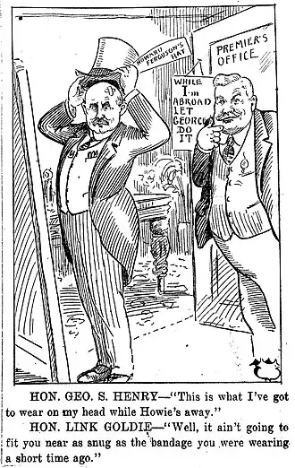 George Stewart Henry (July 16, 1871 – September 2, 1958) was a farmer, businessman and politician in Ontario, Canada. He served as the tenth premier of Ontario from 1930 to 1934. He had acted as minister of highways while Ontario greatly expanded its highway system. Henry continued the expansion as premier, but his party did not provide relief during the Great Depression and lost the 1934 election.