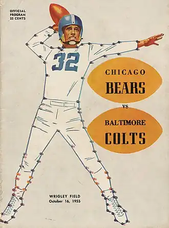 - ^ a b Colts vs. Redskins: Official Program, October 23, 1955, Baltimore Memorial Stadium. Baltimore, MD: Baltimore Football, Inc., 1955; p. 7.