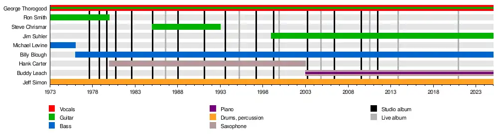 - George Thorogood – lead vocals, guitars (1973–present)