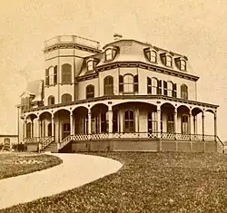 In 1869, Train erected a large Italianate summer cottage in Newport, Rhode Island.[20] Known as Train Villa, it stood at Bellevue Avenue at Bailey's Beach. After Train's death, it was renamed Beachholm. It was destroyed by fire in the 1970s.[20]