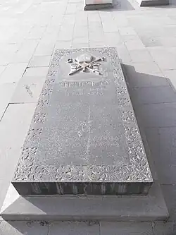Gevorg VI is buried near the Mother Cathedral of Holy Etchmiadzin.