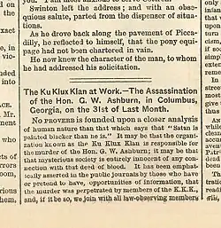- ^ The Murder of George W. Ashburn of Georgia. Published: April 6, 1868. Copyright © The New York Times
