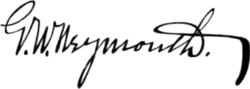 Following his time in Washington, he moved to Fairhaven, Massachusetts, where he served as president of the Atlas Tack Corp. from 1897 to 1910. Weymouth died in an automobile accident near Bingham, Maine, on September 7, 1910.[2] He was interred in Riverside Cemetery in Fairhaven.