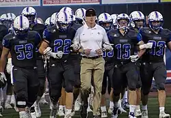 Walton has won the GADA Dodge AAAAA Directors Cup four times since its creation in 1999 for having superior overall athletic performance[15] and five consecutive volleyball championships from 1999 to 2002.[16] In recent years, it has won state championships in boys' tennis, led by outgoing team captain Mitch Lyons, girls' tennis,[15][17] boys' soccer (2002, 2006, 2008, 2011),[18] and boys' baseball.[15] Also in 2011, the men's lacrosse team had an undefeated year where they won the school's first lacrosse championship, and made a promising run in the 2014 season under new Head Coach Griffin Spotz, making it to the semi-finals. In 2004, the Walton Raider football team went undefeated in their region. The Raiders beat Valdosta High School in the state quarter-finals to advance to the state semi-finals at the Georgia Dome, before falling to Parkview High School. In 2007, the Raiders were again region champions, beating the previous state champion and nationally ranked Roswell High School, and the last undefeated team Martin Luther King, Jr. High School in the state quarter-finals to advance to the state semi-finals before falling to North Gwinnett High School at the Georgia Dome.[16]
