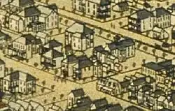 The Grover House as seen in an 1885 Bird's Eye drawing.