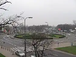 ![]() Aerial view of the roundabout and surroundings from the southeast, with Stadion Narodowy in the background | |