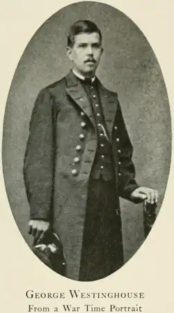 At the outbreak of the Civil War in April 1861, the then 14-year-old attempted to run away from home to enlist, but was stopped by his father. In June 1863 his parents allowed him to enlist, first in the 12th Regiment of the New York National Guard and then in the 16th Regiment of the New York Cavalry. He earned a promotion to the rank of corporal before being honorably discharged in November 1863. A month later he joined the Union Navy. He served as an Acting Third Assistant Engineer on the gunboat USS Muscoota and then on the ship USS Stars and Stripes through the end of the war.[6] These ships were used to blockade Southern port cities. After his discharge in August 1865, Westinghouse returned to his family and enrolled at Union College in Schenectady, but he quickly lost interest and dropped out during his first term.[7]