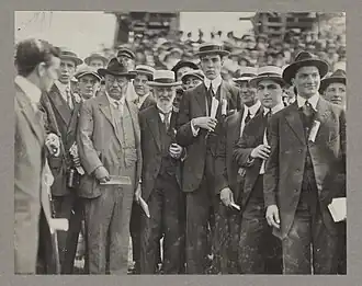 George Wingate (center) along with Theodore Roosevelt at a Public Schools Athletic meet in Central Park, New York City, 1913.