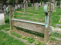 Du Maurier died on 8 October 1896 and was buried in St John-at-Hampstead churchyard in Hampstead. The success of his writings and illustrations allowed du Maurier to leave a then staggering amount of £47,555 in his will.[21]