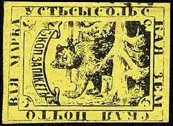 An 1872 3k Zemstvo stamp of Ustsysolsk from the Kaestlin collection.