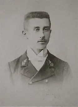 Georges Robert came from a family of manufacturers, who produced high-quality, hand-made lace.[4] In 1893, at the age of eighteen, he entered the École navale, after studying at the Institution Saint-Joseph in Caen, then at the Naval College in Cherbourg. Georges Robert was appointed ensign in 1900 and took part in an eighteen-month campaign in Madagascar.