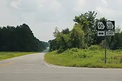 SR 233 begins at an intersection with SR 90 (Salem Church Road), northeast of Rebecca in northwestern Ben Hill County. About 1.2 miles (1.9 km), it crosses into Wilcox County. A short distance later, it intersects Reeves Farm Road (Wilcox County Road 124), J.D. Fitzgerald Road (Wilcox CR 119), and J.B. McWorther Road (Wilcox CR 60) in rapid succession, before it intersects Owensboro Road, which leads to Abbeville. Shortly after is Taylor Road (Wilcox CR 128) and Smitty Road (Wilcox CR 68). Just after this, the route begins heading northwest, intersecting Hudson Road (Wilcox CR 131), Nelson Keene Road (Wilcox CR 115), Crawford Road (Wilcox CR 61), and later, County Farm Road (Wilcox CR 62)/East County Farm Road. Just before entering Rochelle, SR 233 intersects SR 112; they share a concurrency through the city. In Rochelle, the two routes pass local roads that provide access to Wilcox Elementary School and Donnie Clack Stadium. In downtown, they intersect SR 215 (5th Avenue). The three highways share a very brief concurrency in town. About 5 blocks later, they intersect US 280/SR 30 (1st Avenue), where SR 215 departs to the west. SR 112/SR 233 depart Rochelle to the north, passing Hawkins Road (Wilcox CR 26) before splitting. To the northeast, it intersects Brown Water Road (Wilcox CR 7), Bruce Road (Wilcox CR 36), Hackett Road (Wilcox CR 50), Barker Road (Wilcox CR 49), McDuffie Road (Wilcox CR 48), all in rapid succession. Then, it passes Helms Road (Wilcox CR 9), Matthews Road (Wilcox CR 10), McGlamry Road (Wilcox CR 302), before reaching Cannonsville Road (Wilcox CR 253, which leads to Abbeville and Pineview). Farther to the northeast is Dix Road (Wilcox CR 218) and Jean Arthur Road (Wilcox CR 216), and then Connor Road (Wilcox CR 33), before reaching its northern terminus, an intersection with US 129/SR 11 in the northeastern part of Wilcox County.[1]