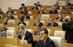 During the 2020 election campaign, Georgian Dream pledged to apply for membership in the European Union in 2024. When Ukraine announced its application four days after the start of the Russian invasion, Georgian opposition politicians called for the country to do the same.[147] However, Georgian Dream reacted reluctantly, saying that not all commitments to apply had been fulfilled yet, and that Ukraine's case was rather a "political gesture" by the European Union amid the Ukraine war, a case that would not have applied to Georgia as it was not in the war. Thus, the party initially said that it would stick to its original schedule.[148] Nonetheless, it soon yielded to the pressure from the public and announced on 2 March 2022 to apply for EU membership, citing "the changed situation in the world".[149][150]