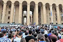 That same day, a large protest took place in front of Parliament, which was violently dispersed by the orders of Interior Minister Giorgi Gakharia. It became known as Gavrilov's Night. Georgian Dream leader Ivanishvili said the protest was legitimate, but the situation was exploited by the opposition parties to storm the parliament building, thus the police measures were necessary to prevent a coup.[117] The protests continued for months, demanding electoral reforms, snap elections, and resignations from the ruling party. Despite some concessions from Georgian Dream, such as the resignation of the chairman of parliament and the partial electoral amendments, the protests did not stop.[118][119][120]