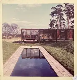 Georgie Cheesman trained at the Architectural Association at the same time as Rogers, helping him with his draughtsmanship. During her travels to the United States became a fan of the Eames House and Philip Johnson's Glass House.[4]